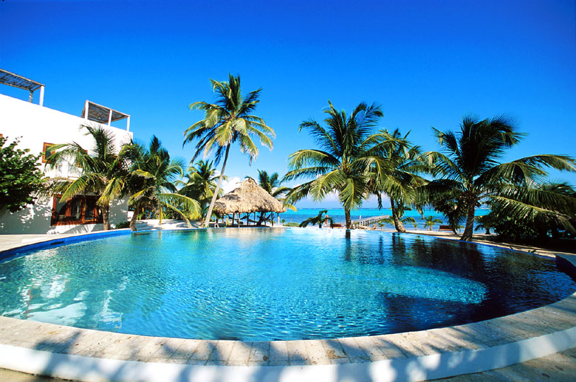 December 2009Ambergris Essentials: Azul Resort. North of San Pedro, these two 3,000-square-foot, two-bedroom rock star villas complete with rooftop hot tubs share a pool and a nice beach adjacent to Rojo Lounge, Belize's best restaurant, which caters all your meals.