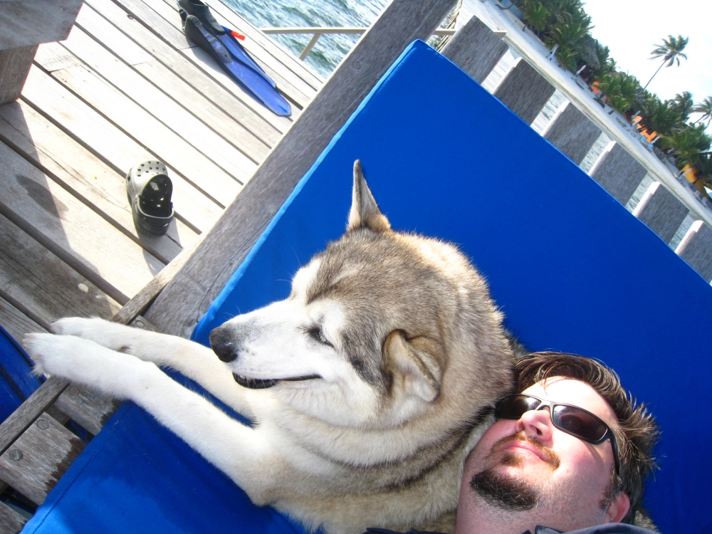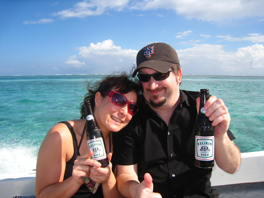 Enjoying conch pizza at Rojo Lounge / Azul Resort. Listed in Caribbean Travel & Life's 25 Quintessential Caribbean Beach Experiences" January 2010
